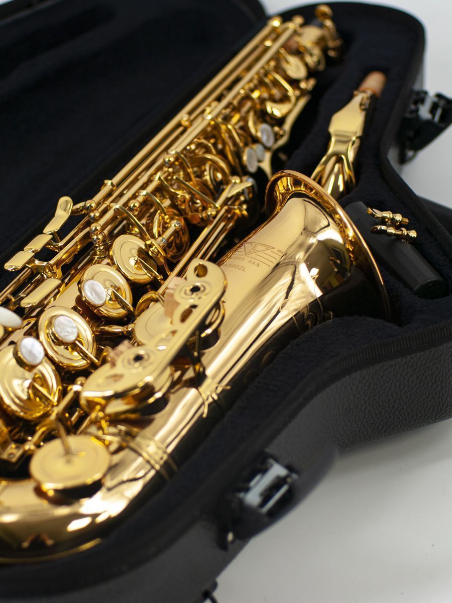 Artist AS-602L Саксофон альт Eb, желтая медь, лакированный, тянутые клапана (soldered toneholes), высокий клапан F#, в комплекте кейс, ремень, мундштук