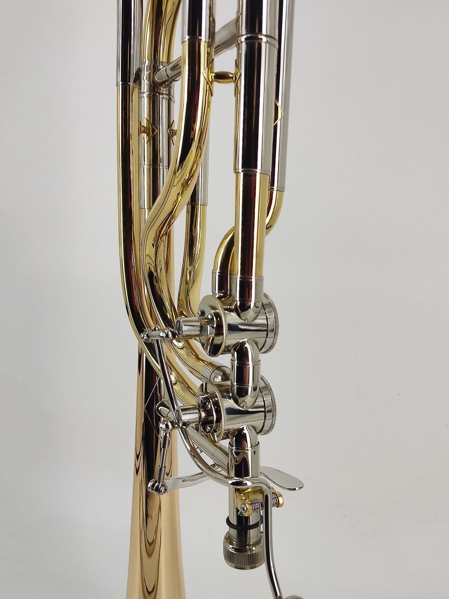 Artist SL-831 Тромбон бас Bb/F/Gb/D, раструб 241 мм, мензура 14.2 мм, настроечный крон мельхиор, кулиса мельхиор, покрытие золотой лак, облегченный кейс в комплекте