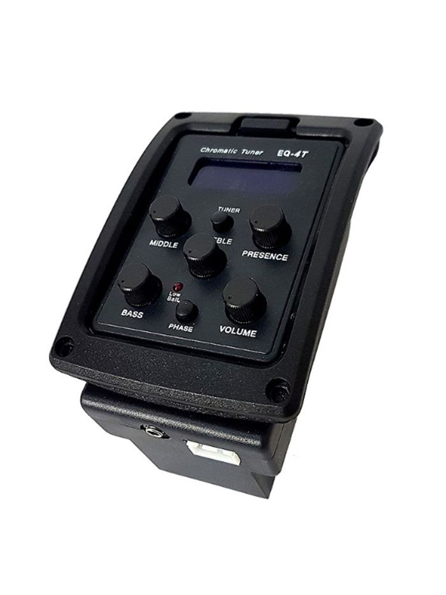 BaggZ EQ-4T – звукосниматель с четырехполосным эквалайзером и тюнером, предназначенный для акустических гитар. BaggZ – это качественные звукосниматели, прочные чехлы и стильные ремни для гитар. Продукция фирмы изготавливается на крупном китайском заводе. Все товары проходят поэтапный контроль качества, маркируются и успешно поставляются в различные страны мира. Особенности модели: – 4 полосы эквализации – регулировка уровня громкости, низких, средних и высоких частот – функция реверса фазы для подавления обратной связи – встроенный тюнер с ЖК-дисплеем – соединительные провода в комплекте Компактные размеры модели BaggZ EQ-4T обеспечивают простую установку в корпус инструмента. Четыре полосы эквализации помогут быстро преобразить звук и подавить обратную связь. Встроенный тюнер с ЖК-дисплеем позволит вам без труда настроить инструмент. Доступный по цене эквалайзер BaggZ EQ-4T сделает звучание вашей гитары мощным, объемным и качественным.