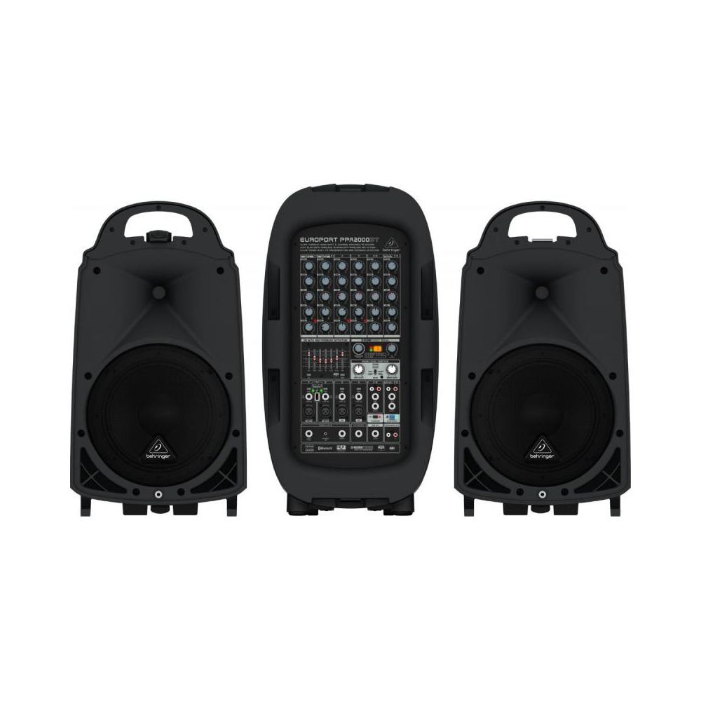 Behringer PPA2000BT Система звукоусиления портативная 2000 Вт, 8 каналов, процессор эффектов Klark Technik, FBQ, XM1800S в комплекте, динамики 1*1,35", 1*10", Bluetooth, порт для подключения беспроводного микрофона