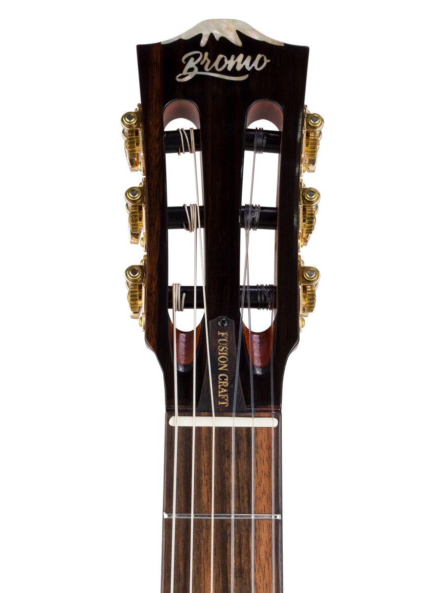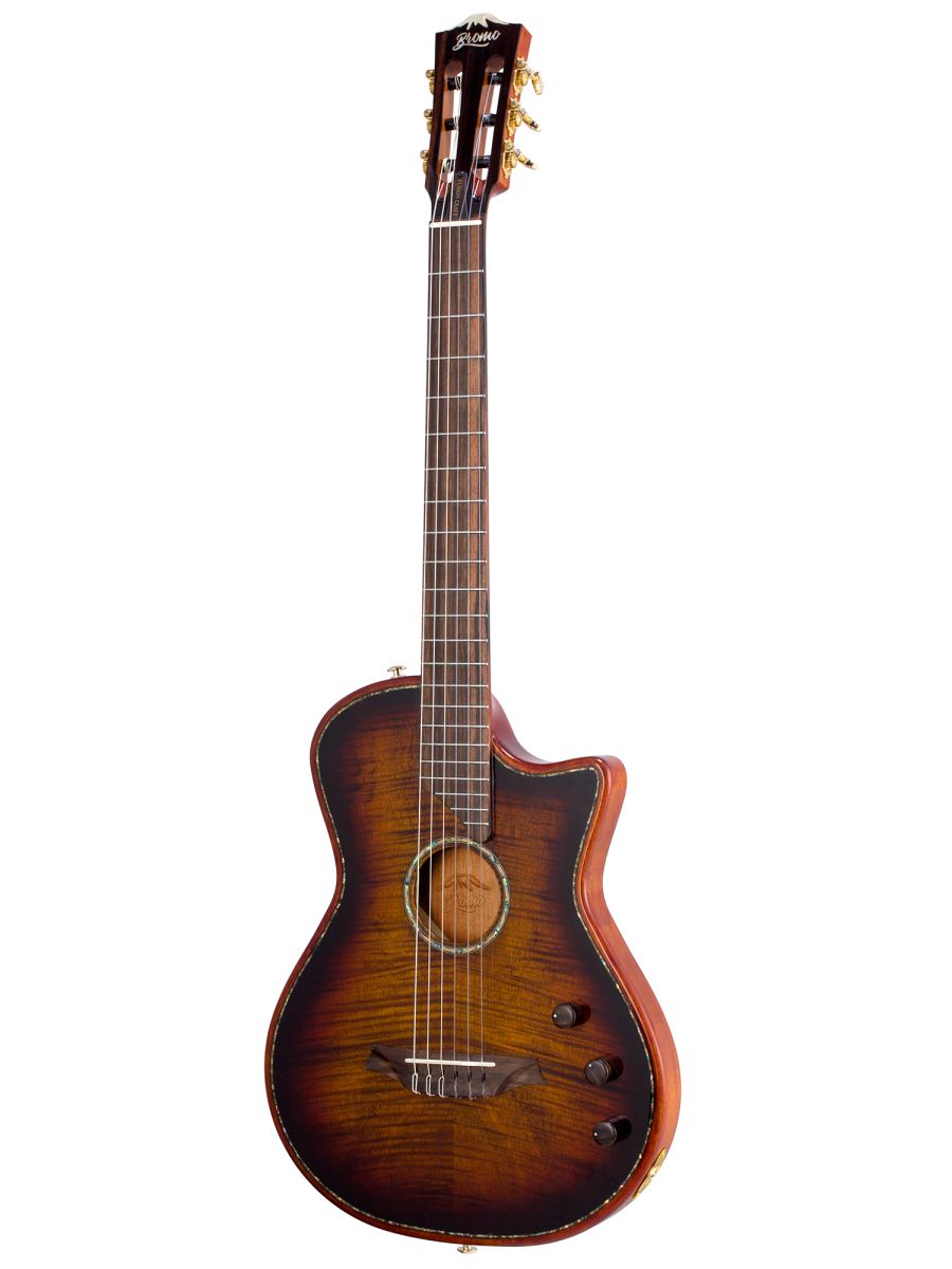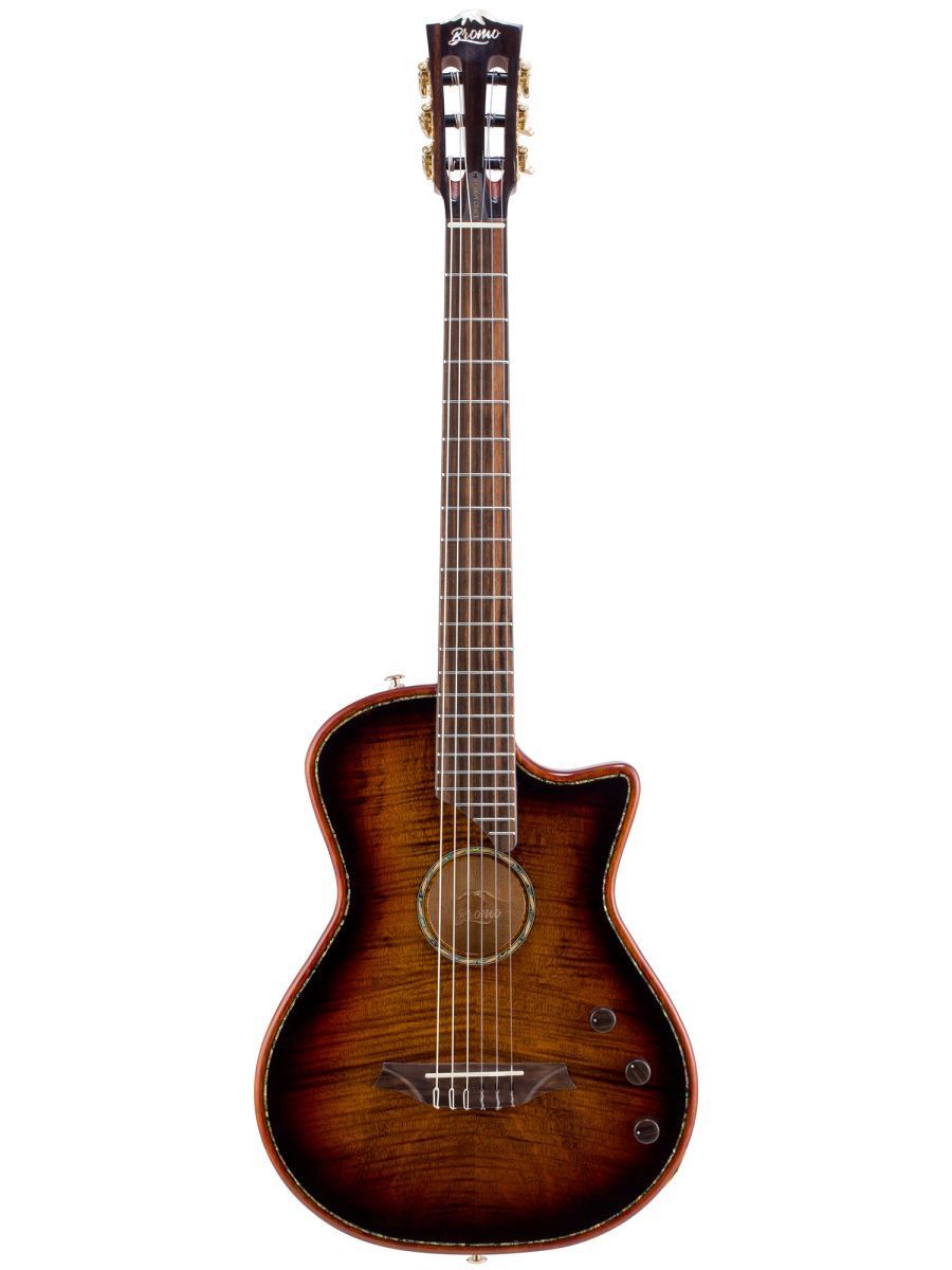 Bromo BEN2C3TS — полуакустическая гитара для музыкантов, ценящих универсальность, глубину звучания и премиальное качество. Модель сочетает традиции классического гитарного мастерства с современными технологиями звукоусиления. Корпус из махагони обеспечивает тёплый, насыщенный тон с выраженной серединой и отличной артикуляцией. Древесина известна стабильностью и долговечностью. Верхняя дека из массива ситхинской ели, облицованная слоем высококачественного огненного окуме класса 5A, не только обеспечивает чистый, выразительный тон, но и излучает экзотическую красоту, обогащенную потрясающе глубокой, волнистой текстурой древесины. Гриф из махагони с двухсторонним анкерным стержнем гарантирует стабильность геометрии грифа при перепадах влажности и температуры. Анкер позволяет точно регулировать профиль грифа для комфортной игры. Нейлоновые струны создают мягкий, бархатистый звук, характерный для классической гитары, снижают нагрузку на гриф и удобны для пальцевой техники. Винтажные колки «Mt. Bromo» обеспечивают плавность хода, высокую точность настройки и стабильность строя, позолоченное покрытие защищает от коррозии и придаёт инструменту элегантный вид. Гибридная электронная система (пьезодатчик + 3‑позиционный звукосниматель) позволяет передавать чистый акустический звук через пьезодатчик, выбирать оптимальный тембр с помощью 3‑позиционного переключателя, уверенно выступать на сцене и записывать в студии с минимальными искажениями. Глянцевое покрытие подчёркивает текстуру древесины, защищает инструмент от внешних воздействий и придаёт роскошный внешний вид. Утеплённый жёсткий кейс обеспечивает надёжную защиту от ударов, перепадов температуры и влажности при транспортировке и хранении. Bromo BEN2C3TS — это гармоничный сплав традиций и инноваций. Богатое звучание, надёжная конструкция, стильная внешность и удобная электроника делают эту гитару идеальным спутником для творчества на любом уровне.