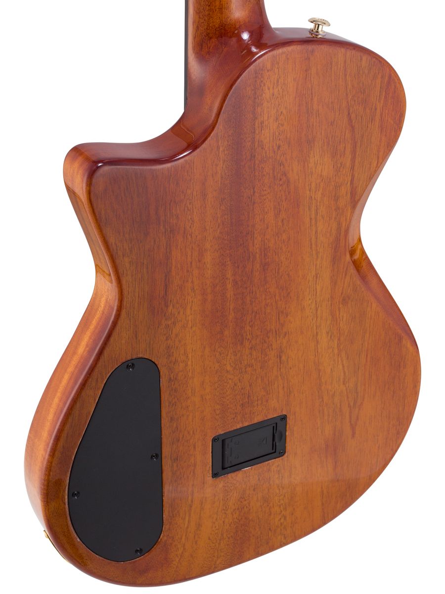 Серия: Fusion Craft Форма корпуса: Hollow Body with Cutaway Мензура: 650 мм (25 19/32”) Ширина грифа на нулевом ладу: 48 мм (1 57/64”) Ширина порожка: 45 мм (1 49/64") Корпус: махагони Верхняя дека: ель с шпоном из огненного окуме класса 5A Гриф / накладка грифа: махагони / макассарский эбен Анкерный стержень: двухсторонний Лого на голове: гора Бромо, перламутр Оформление резонаторного отверстия: «Ковбойская веревка» Бридж: "Орлиное крыло", черное дерево Amara Лады: 22 Верхний и нижний порожки: кость Колки: винтажные "Mt. Bromo", позолоченные Электроника: пьезодатчик + 3-позиционный звукосниматель под струнодержателем Отделка: глянцевый лак Цвет: 3 Tone Sunburst В комплекте: утепленный жесткий кейс