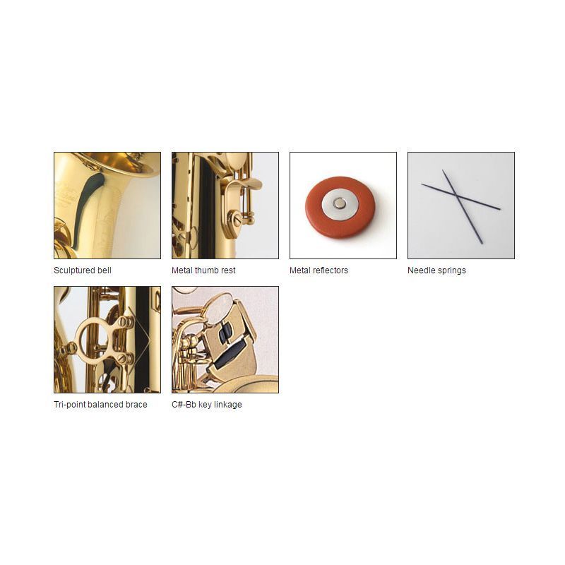 J. Michael AL-800B – качественный саксофон альт Eb от знаменитого производителя духовых музыкальных инструментов. Особенности модели: – клапаны с высококачественными игольчатыми пружинами – металлические резонаторы – надежная металлическая опора для большого пальца – продуманная конструкция клавиш С#-Bb Доступный по цене альт-саксофон J. Michael AL-800B обладает звучанием профессиональной модели. Роскошное черно-золотое исполнение инструмента подчеркнет вашу индивидуальность. Изящные узоры, выгравированные на раструбе, прекрасно дополняют дизайн модели J. Michael AL-800B. Саксофон поставляется в комплекте с качественным кейсом из прочного пластика ABS.