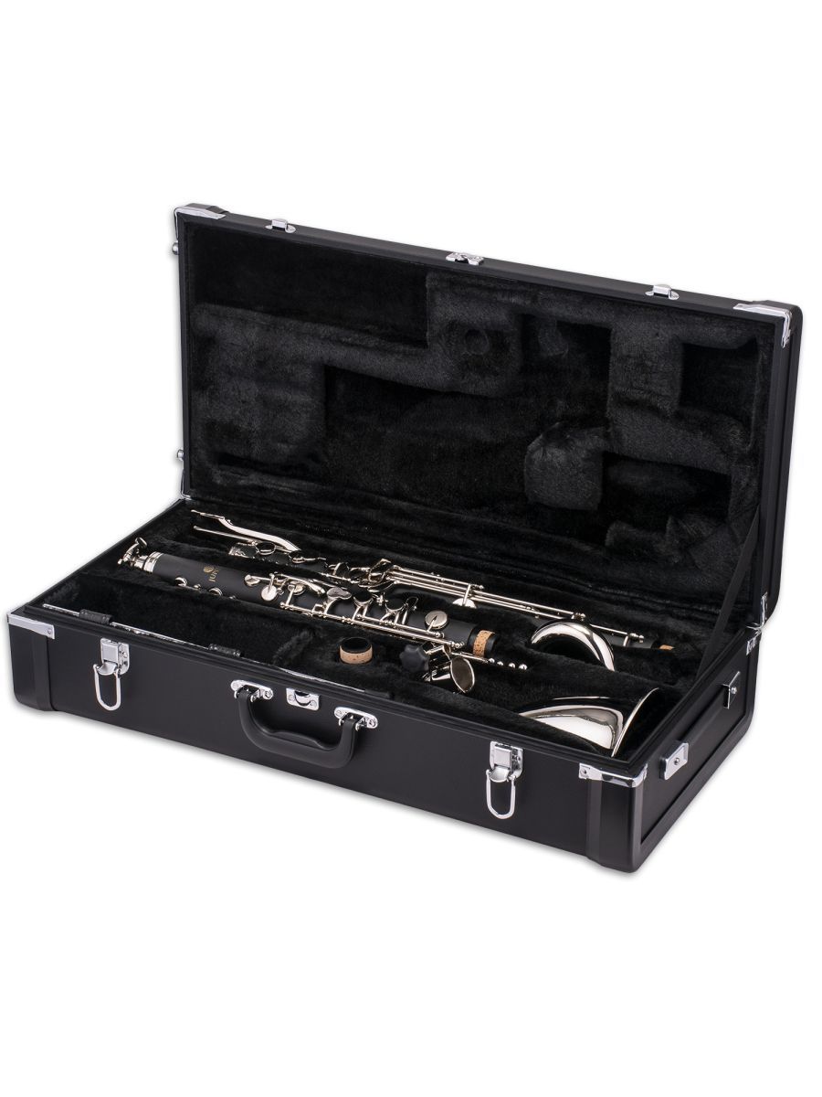 Jupiter JBC1000N Кларнет бас Bb, A= 442Hz, корпус - пластик с металлическими кольцами, эска, раструб и механика - нейзильбер, покрытие клапанов - никель, нижний Eb, кейс JKC-BC45PA