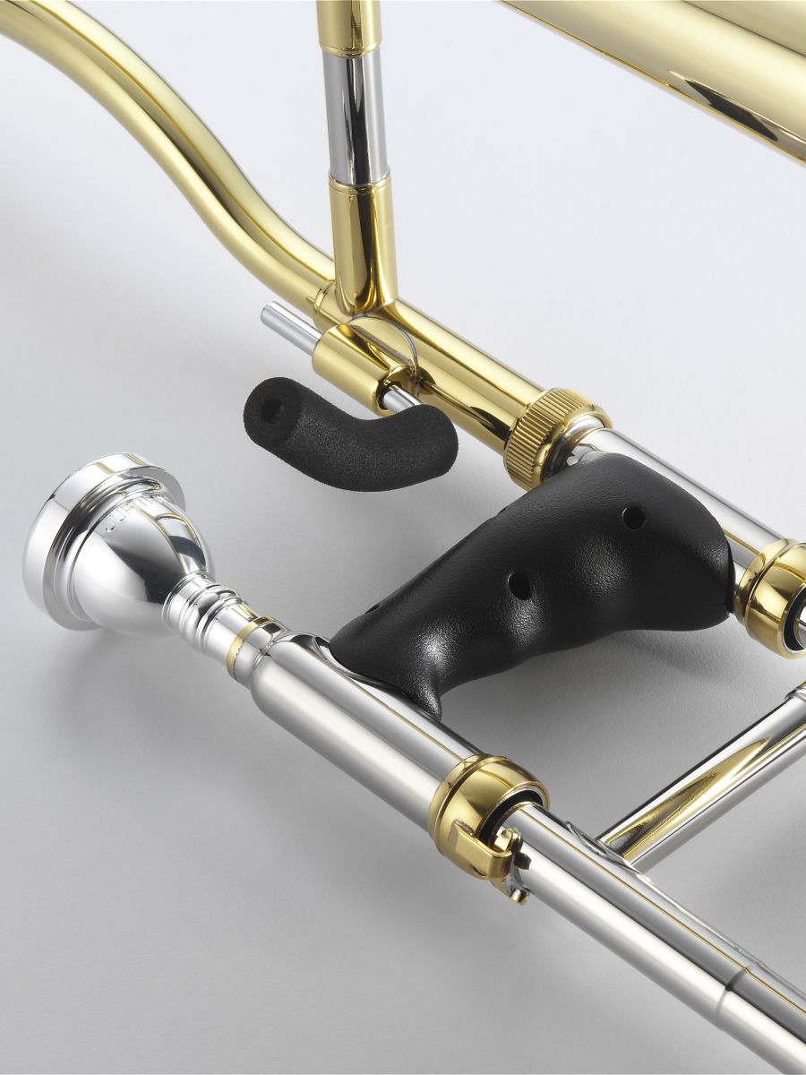 Эргономичные тромбоны JUPITER считаются важной вехой в удовлетворении потребностей начинающих исполнителей. JTB710A представляет собой идеальное сочетание облегченного инструмента, легкости в обращении и превосходного звучания. Формованная рукоятка на затворе, мягкий крючок для большого пальца, особый изгиб на раструбе (так называемый «гусиная шея») и идеальное равновесие инструмента обеспечивают расслабленную удобную позу ребенка при занятиях музыкой. При необходимости рукоятку и крючок для большого пальца можно снять. Jupiter JTB710A – отличный выбор для юных тромбонистов!