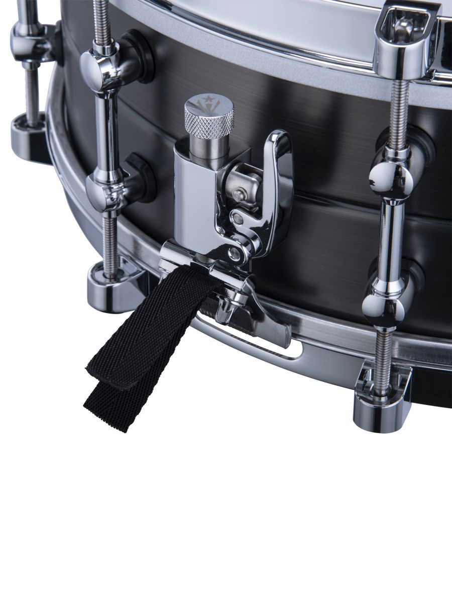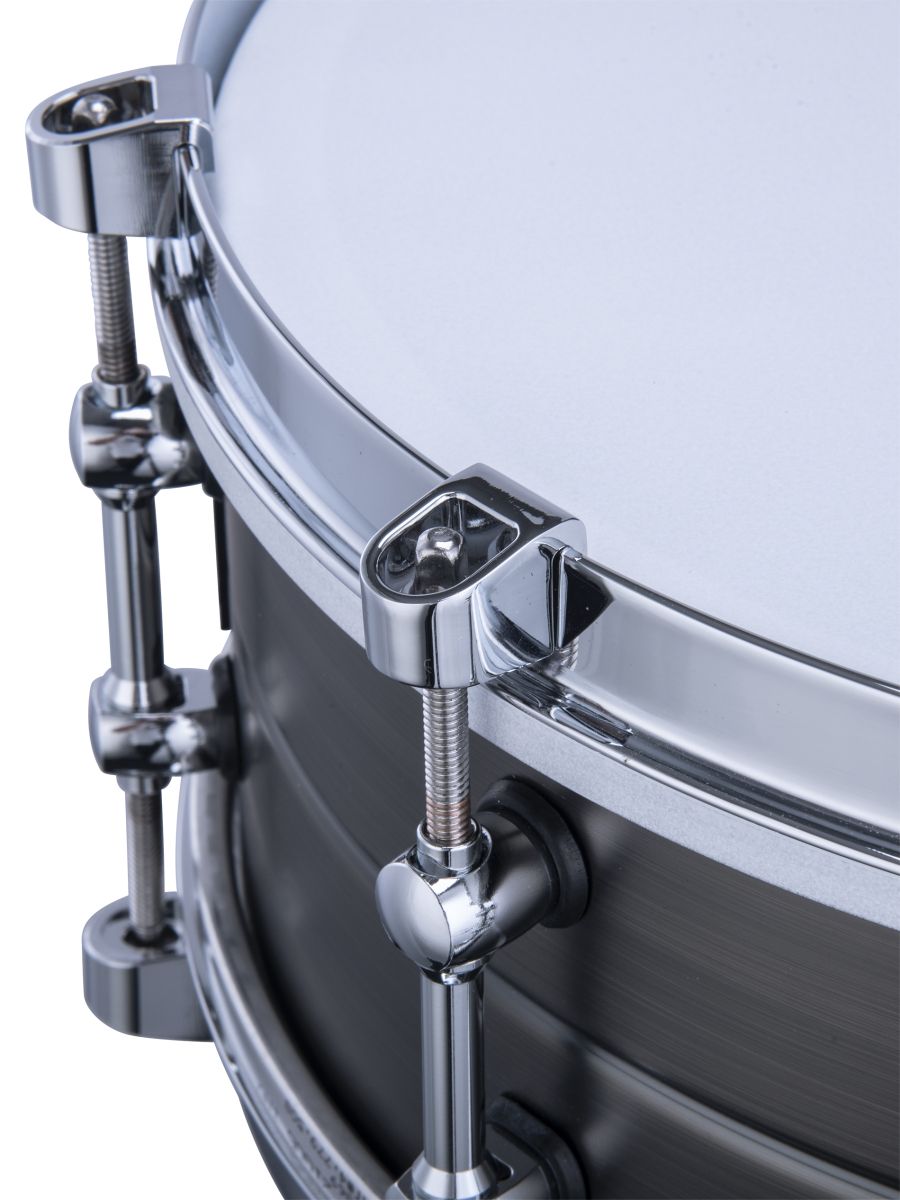 Размер: 14” x 6,5” Корпус: латунь (1,2 мм) Фурнитура корпуса: хромированная Кромка: внутренний острый угол 45° (с обеих сторон) Отделка: матовый античный никель Обод: однофланцевый (латунь) Верхний пластик: Remo Diplomat с покрытием Резонансный пластик: Remo Diplomat Hazy (сторона малого барабана) Сетчатый фильтр: OP-01 Подструнник: ST16-1403 без покрытия из нержавеющей стали (4) 0,6 мм и (10) 0,8 мм и (2) 1,0 мм Модификатор частоты: PFM1465