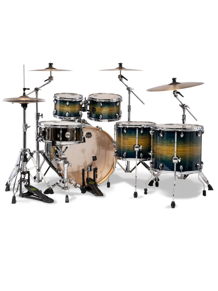 Серия: Armory Корпус: клен/береза, 8 слоев, толщина 7,55 мм Система крепления томов : SONIClear™ Пластики: Remo UC Double-ply Clear Batter, UX Clear Bottom для подвесных томов Remo UT Пластики: Clear Batter head(with dampeningring), UC Coated Reso Head для бас-барабана Ножки напольного тома: SONIClear™ Цвет: Rainforest Burst * Набор стоек, педаль и стул не включены в комплект. ** Для комплектации ударной установки рекомендуем использовать хардваер Mapex 800 серии или комплект стоек с педалью Mapex HP8005