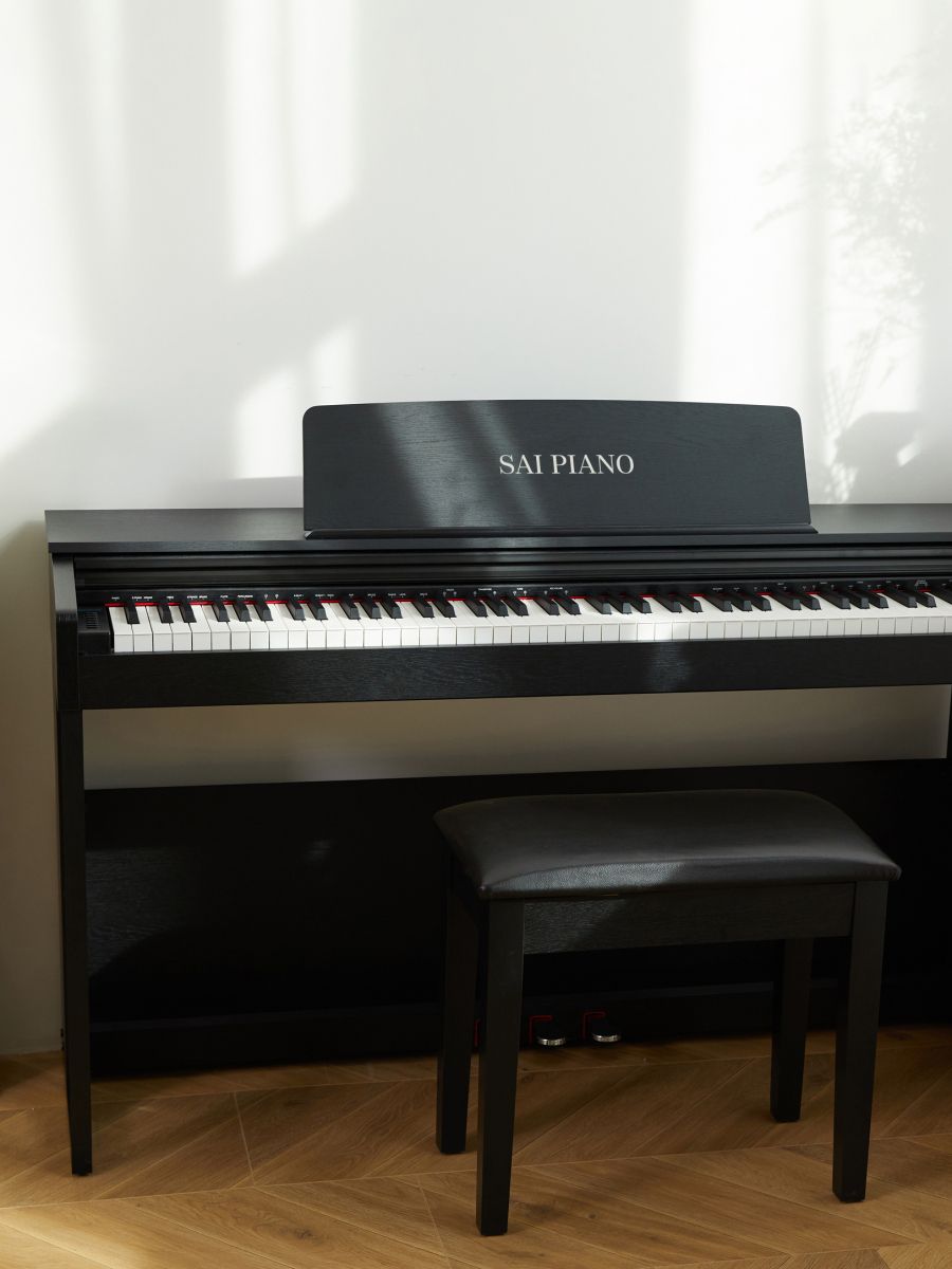 Sai Piano P-150BK Пианино цифровое, 88 клавиш, молоточковая механика, 300 тембров, 128 полифония, 60 предустановленных песен, 200 ритмов, реверберация, хорус, динамики 2*25Вт, стойка, три педали, цвет черный