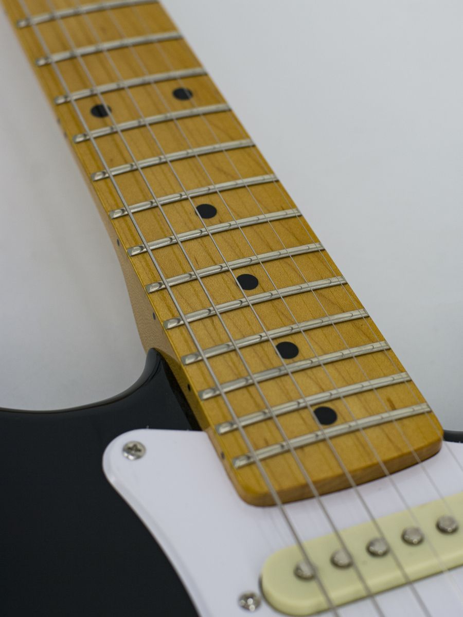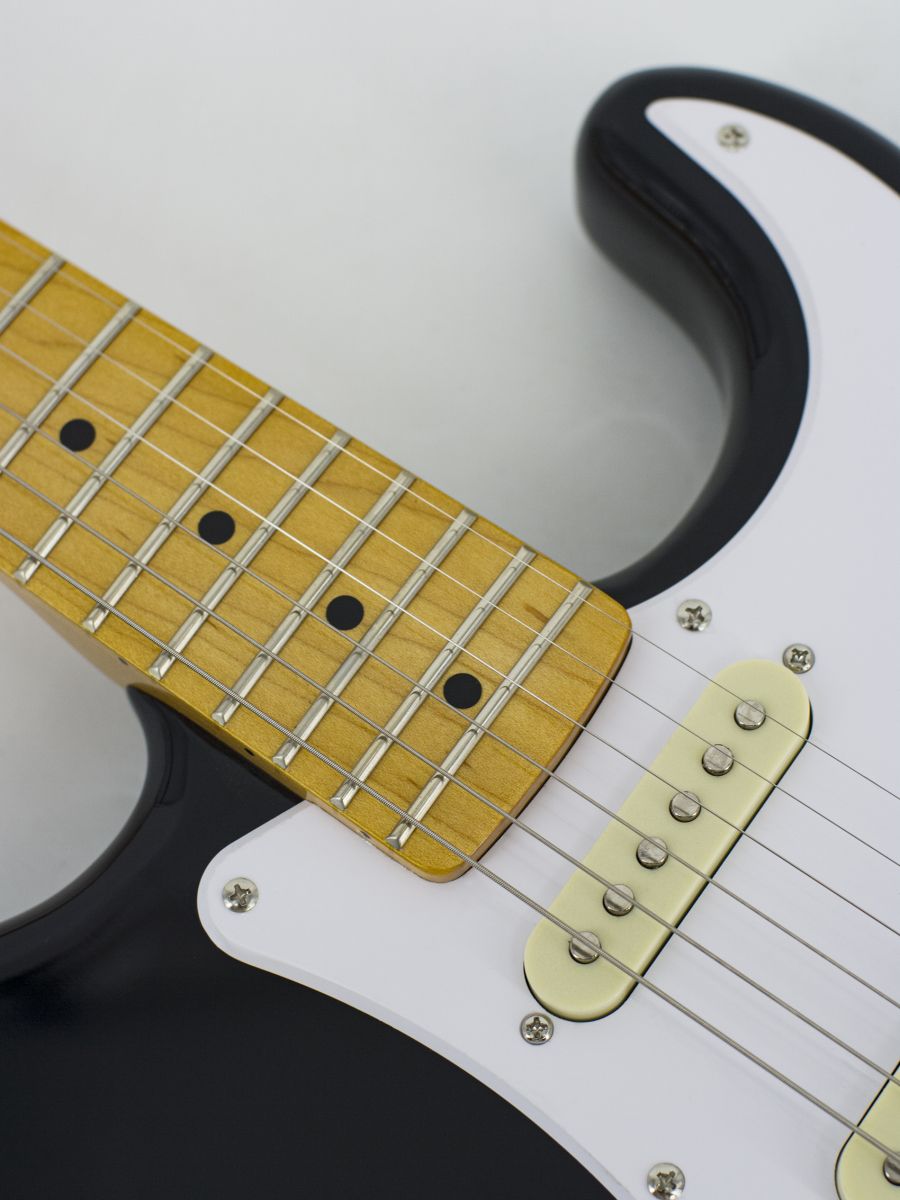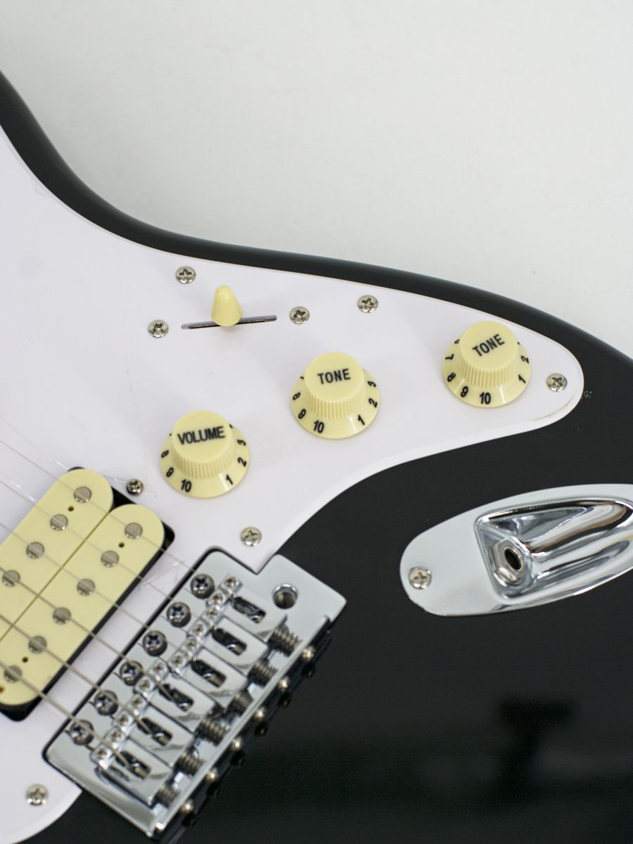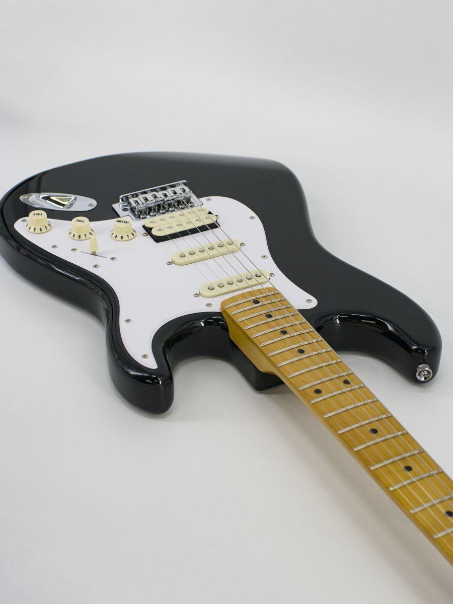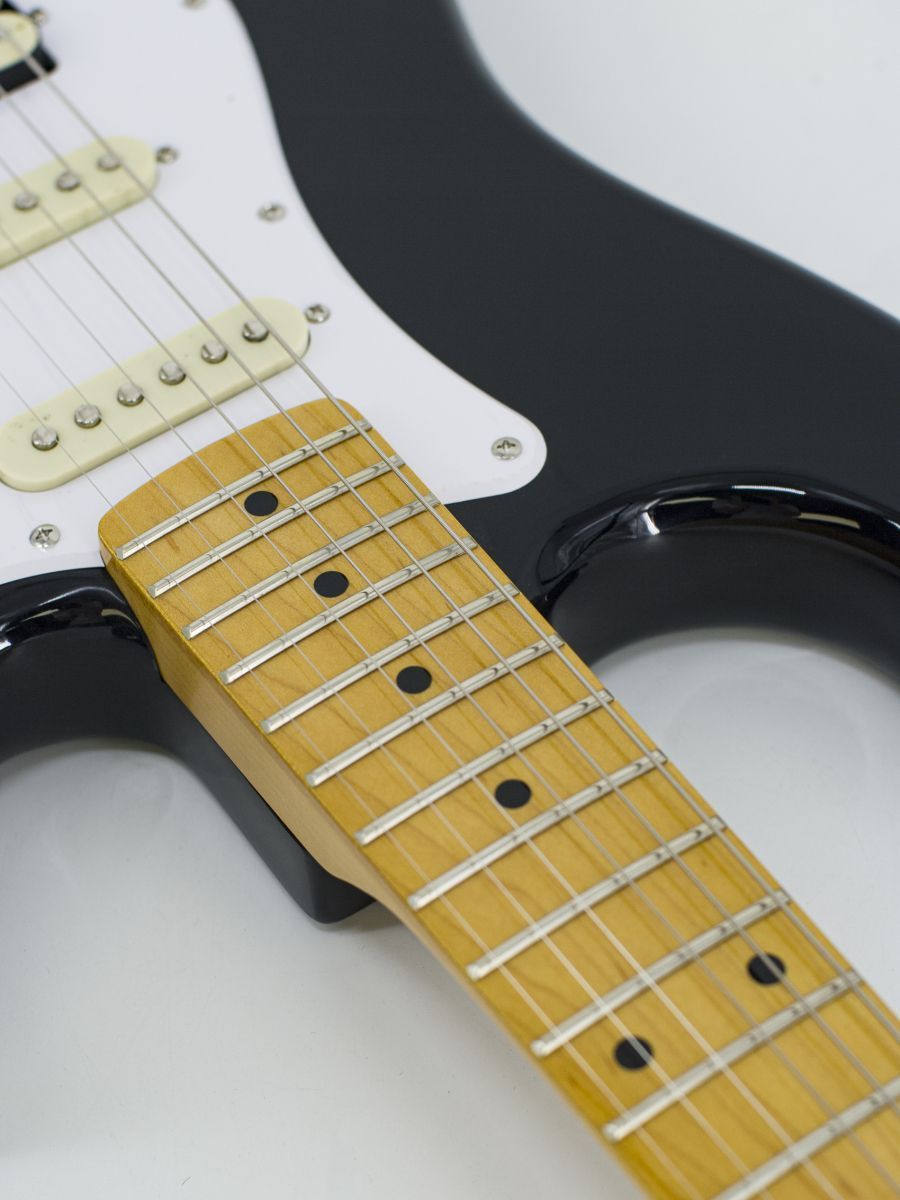 Конструкция: stratocaster Мензура: 648 мм Ширина верхнего порожка: 42 мм Материал корпуса: липа Гриф / накладка грифа: отборный канадский клён / отборный канадский клён Лады: 21 Колки: хром Звукосниматели: H-S-S Регуляторы: громкость – 1, тон – 2, 5-позиционный переключатель Машинка: Vintage Цвет корпуса: Black Страна-производитель: Китай