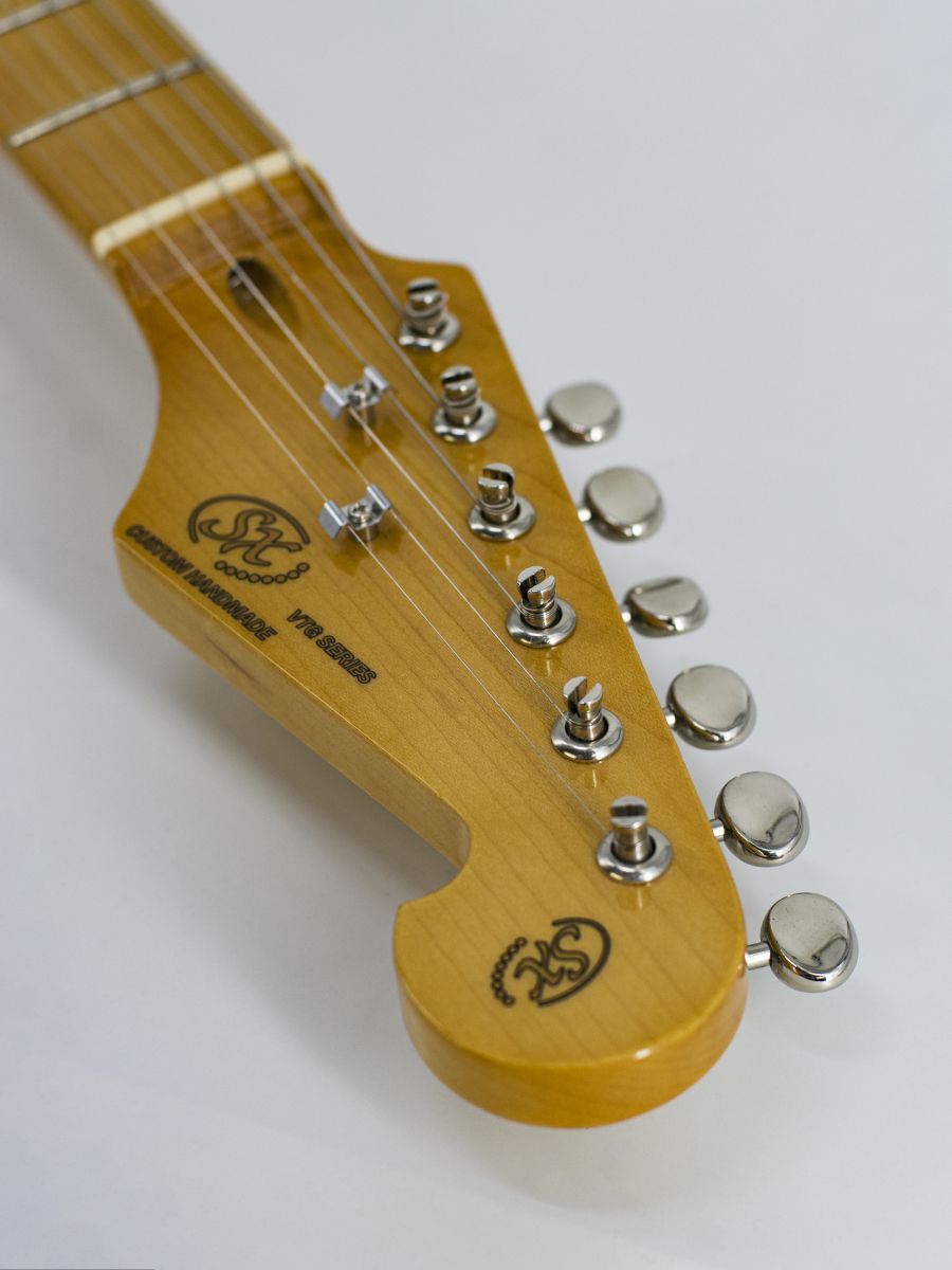 SX SST57+/HSS/BK – представляет собой электрогитару, которая сочетает в себе высокое качество сборки, надежную электронику и профессиональное звучание. Бренд SX был создан в 1998 году и за короткий срок заработал отличную репутацию. Все инструменты изготавливаются только из качественных материалов, поэтому продукция бренда отличается не только потрясающим звуком, но и превосходным дизайном. Инструменты SX очень часто используются в студиях звукозаписи, в музыкальных учебных заведениях, а также на концертных площадках разного размера. SX сегодня – это надежность и качество по доступной цене. Корпус электрогитары изготовлен из липы, которая обеспечивает яркий звук и богатый тембр с большим количеством оттенков. Гриф и накладка выполнены из отборного канадского клена. Каждая деталь электрогитары прошла тщательную проверку и отвечает самым высоким стандартам. Модель хорошо резонирует, обладает сложными характеристиками звука и развернутым диапазоном.