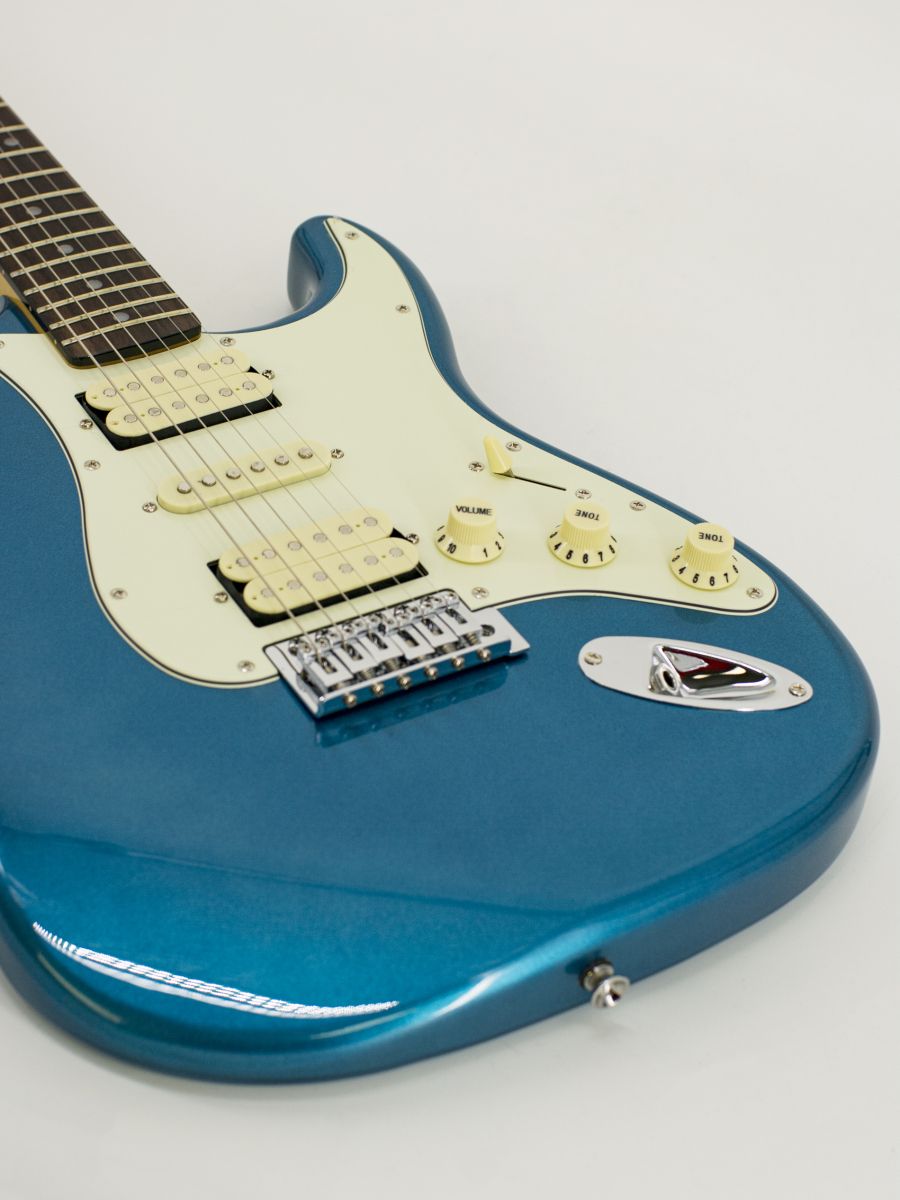 Тип корпуса: стратокастер Мензура: 648 мм Ширина верхнего порожка: 42 мм Материал корпуса: липа Гриф / накладка грифа: отборный канадский клён с палисандровой вставкой / палисандр Лады: 21 Звукосниматели: H-S-H Регуляторы: громкость – 1, тон – 2, 5-позиционный переключатель Цвет корпуса: Lake Placid Blue Страна-производитель: Китай