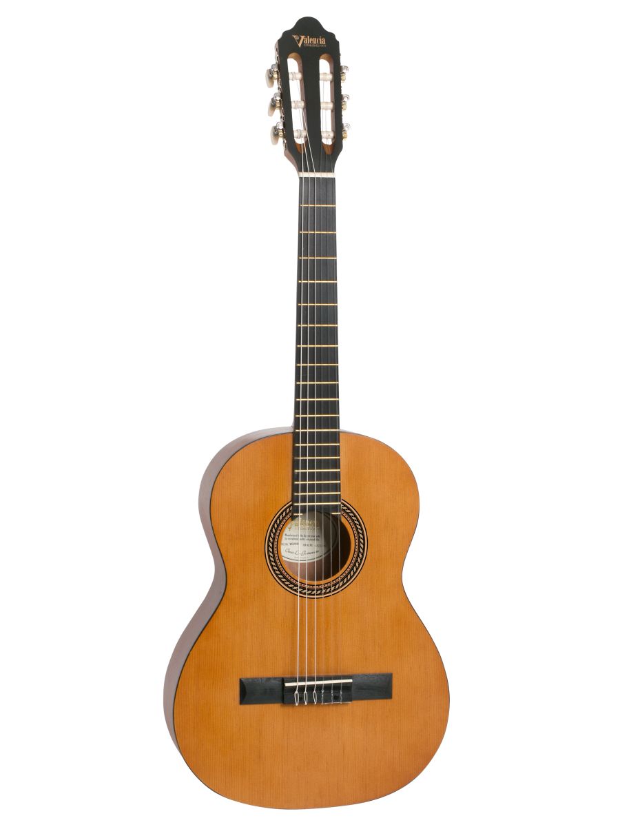 Valencia VC203H Гитара классическая 3/4, верхняя дека: ель, нижняя дека и обечайка: нато, узкий 42 мм гриф: махагони, накладка грифа и нижний порожек: махагони, колки: винтажные, никель, цвет натуральный